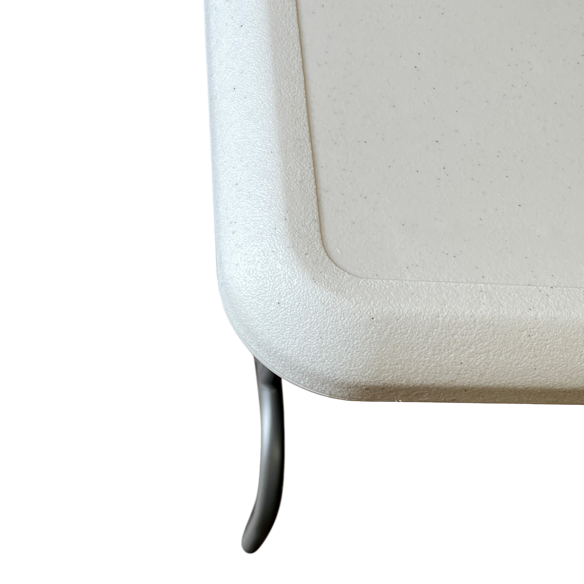 Easy-to-carry commercial-grade SKILCRAFT® Blow-Molded Folding Tables for indoor and outdoor use are made of high-density polyethylene with contemporary beveled radius edged tops. Tables weigh 30% less than standard wood laminate folding tables but are far more durable with heavy-gauge, gray powder-coated steel legs, non-mar plastic feet, and cross bracing that folds into the underside cavity for safe storage and easy transport. Tables clean easily; resist dents, scratches, rust, stains, and warping; and carry a 5-year limited warranty. Made with tops of approximately 35% pre-consumer recycled content and all parts recyclable at end of life. TAA and Berry Amendment-compliant tables meet BIFMA standards. Made in America.