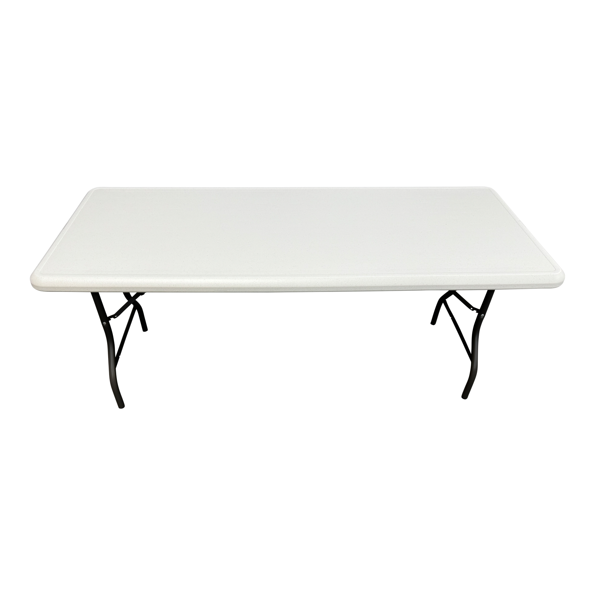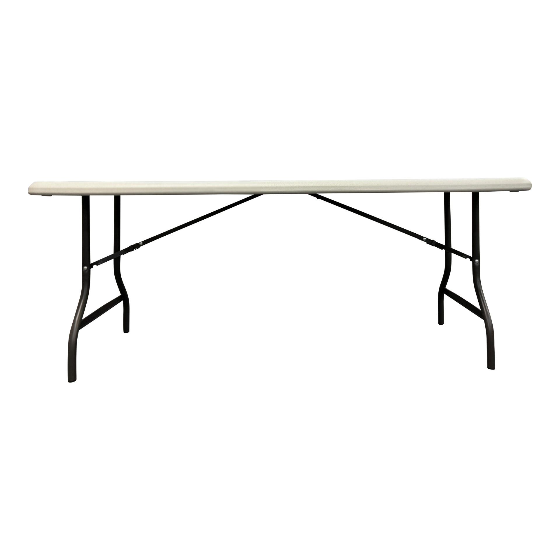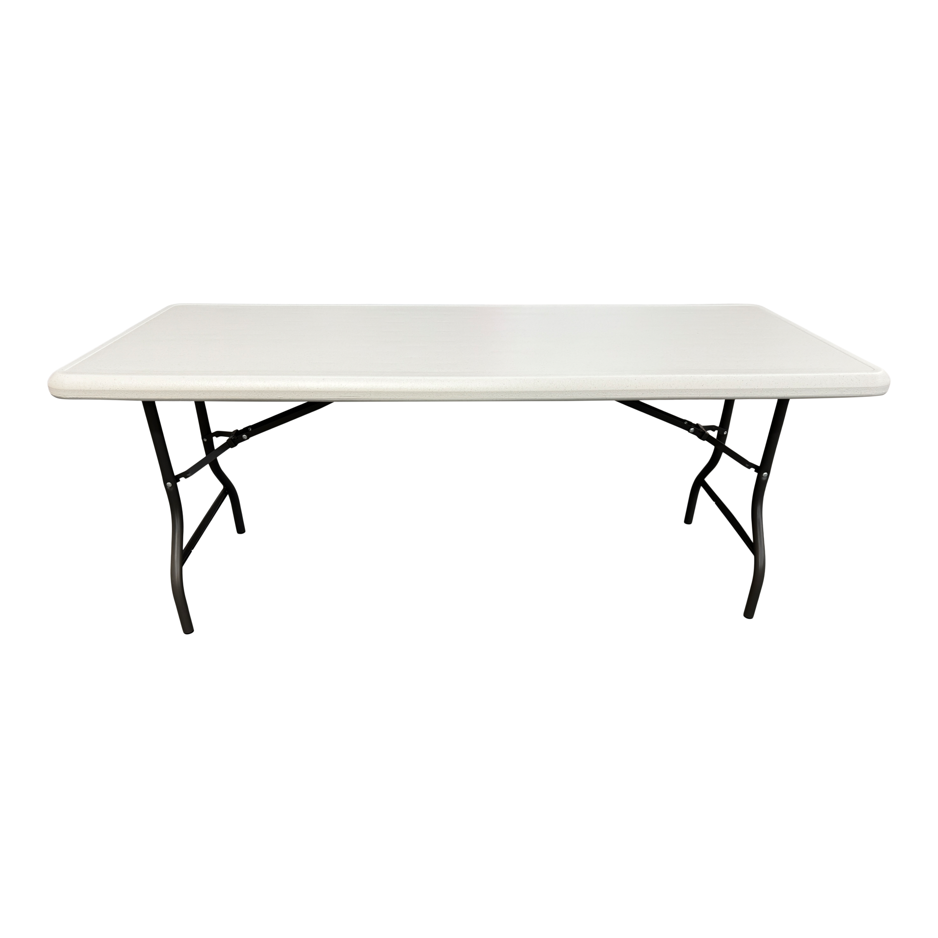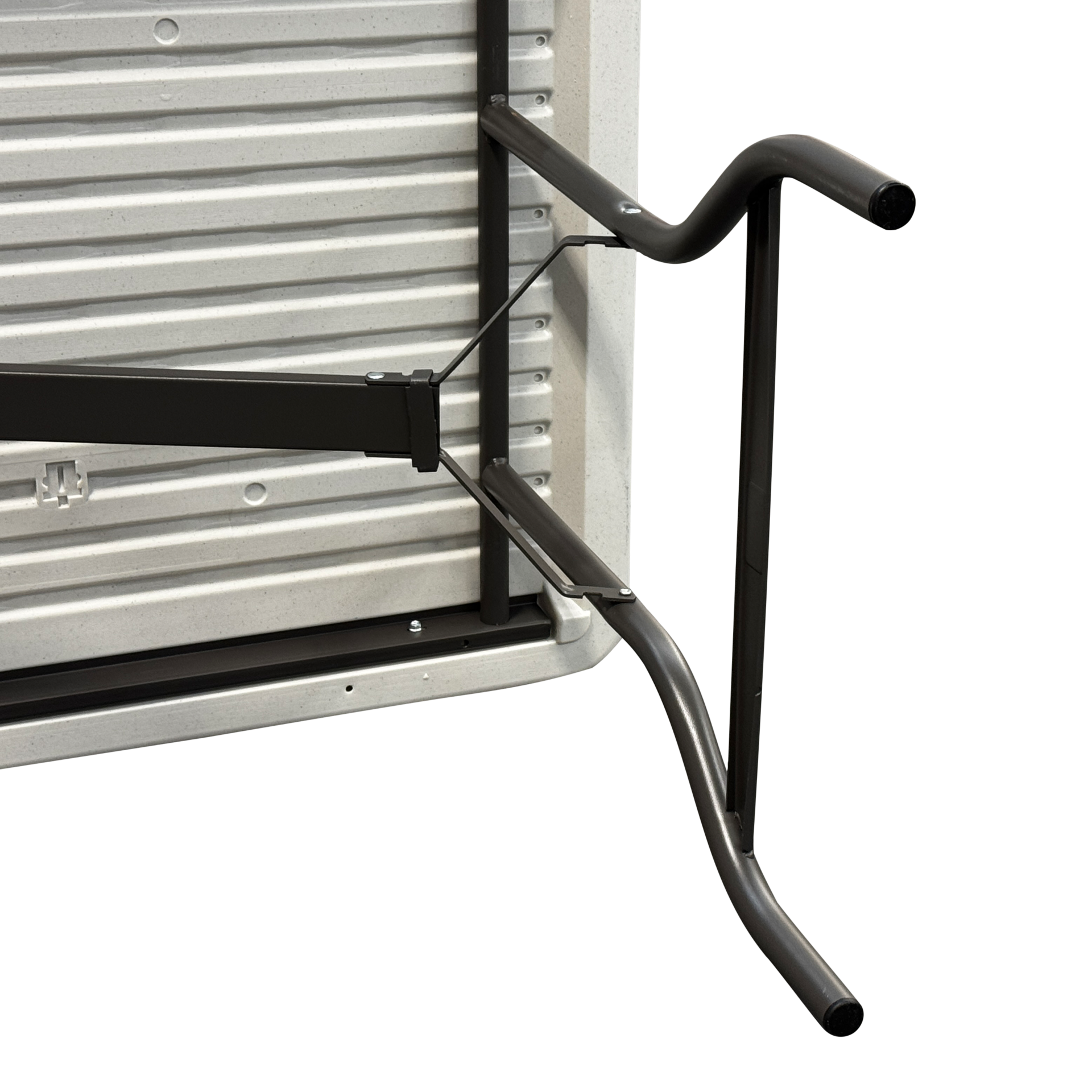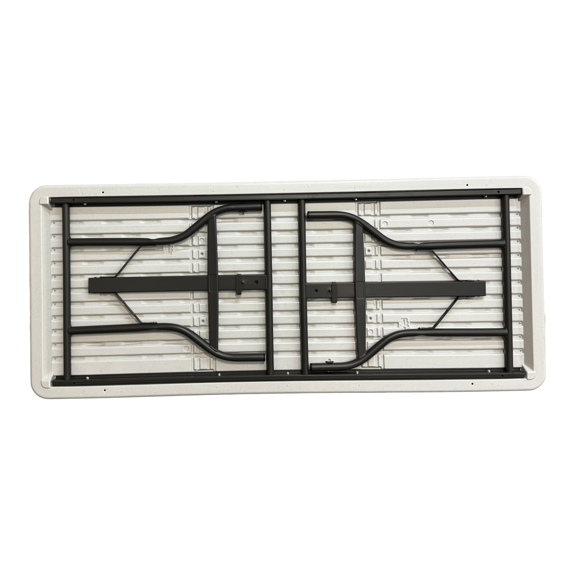 Easy-to-carry commercial-grade SKILCRAFT® Blow-Molded Folding Tables for indoor and outdoor use are made of high-density polyethylene with contemporary beveled radius edged tops. Tables weigh 30% less than standard wood laminate folding tables but are far more durable with heavy-gauge, gray powder-coated steel legs, non-mar plastic feet, and cross bracing that folds into the underside cavity for safe storage and easy transport. Tables clean easily; resist dents, scratches, rust, stains, and warping; and carry a 5-year limited warranty. Made with tops of approximately 35% pre-consumer recycled content and all parts recyclable at end of life. TAA and Berry Amendment-compliant tables meet BIFMA standards. Made in America.
