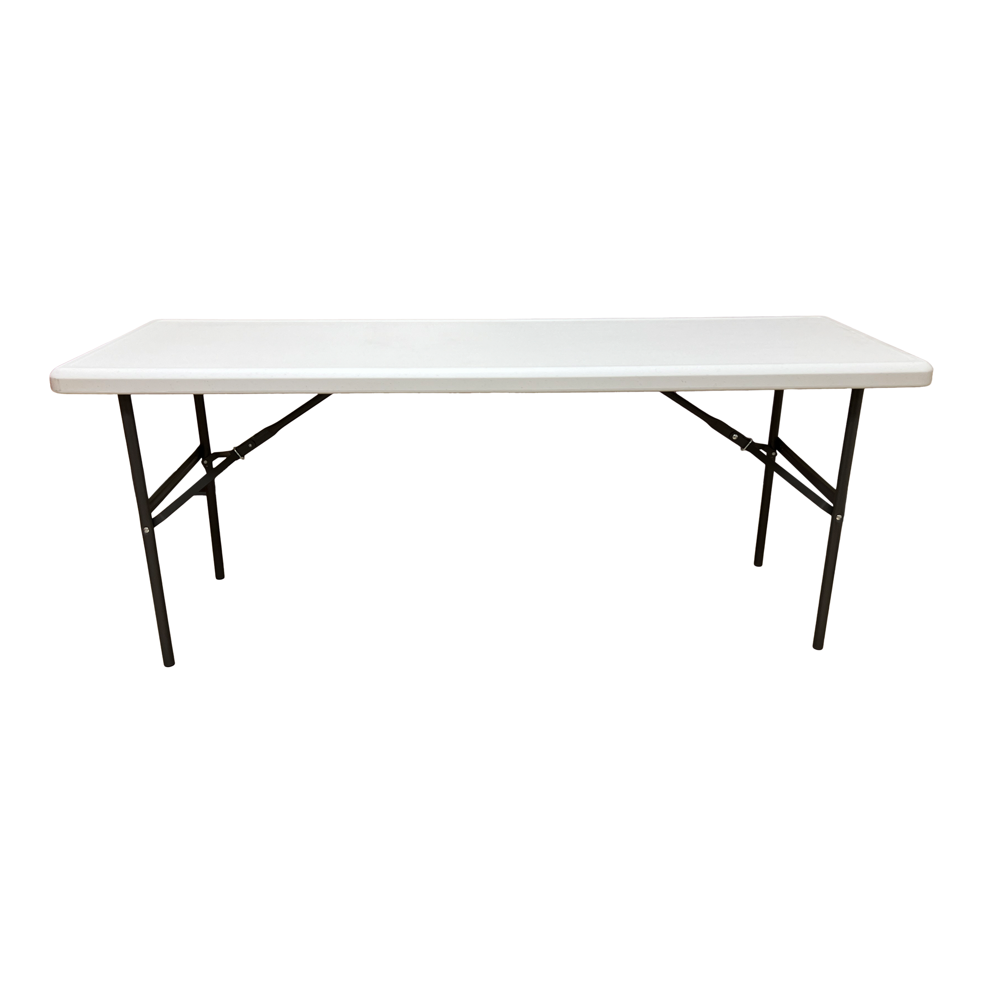Durable, commercial-grade, SKILCRAFT" Blow-Molded Folding Tables are made of high-density polyethylene plastic with contemporary beveled, radius-edged tops. 30% lighter in weight than standard wood laminate folding tables, but far more durable. Heavy gauge, gray, powder-coated steel legs with cross bracing. Legs fold into underside cavity for safe storage and easy transport. Non-mar plastic feet on legs. Highly portable. For use indoors or outdoors. Tables clean easily and resist dents, scratches, rust, stains, and warping. Tops are made with approximately 35% pre-consumer recycled content and all parts are recyclable at end of life. 5-yearlimited warranty. Tables meet BIFMA standards TAA and Berry Amendment compliant. Table measures 72" W x 24" D x 29" H with a 300-lb, evenly distributed, weight capacity. Platinum Gray in color. Made in America.