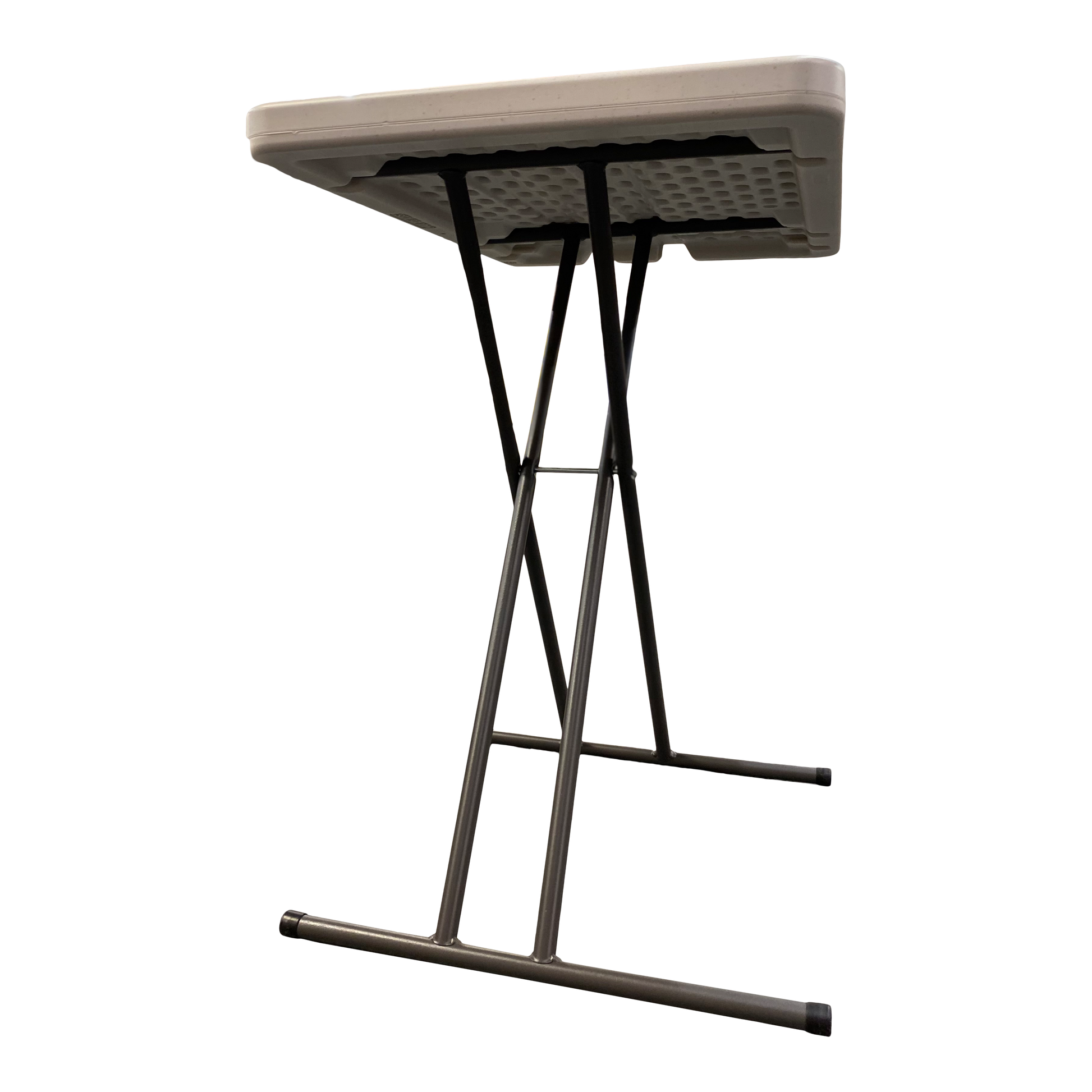Durable, commercial-grade, SKILCRAFT® Blow-Molded Personal Adjustable Height Folding Tables are highly portable. For use indoors or outdoors. Made in the U.S.A. TAA and Berry Amendment compliant. Made in America.