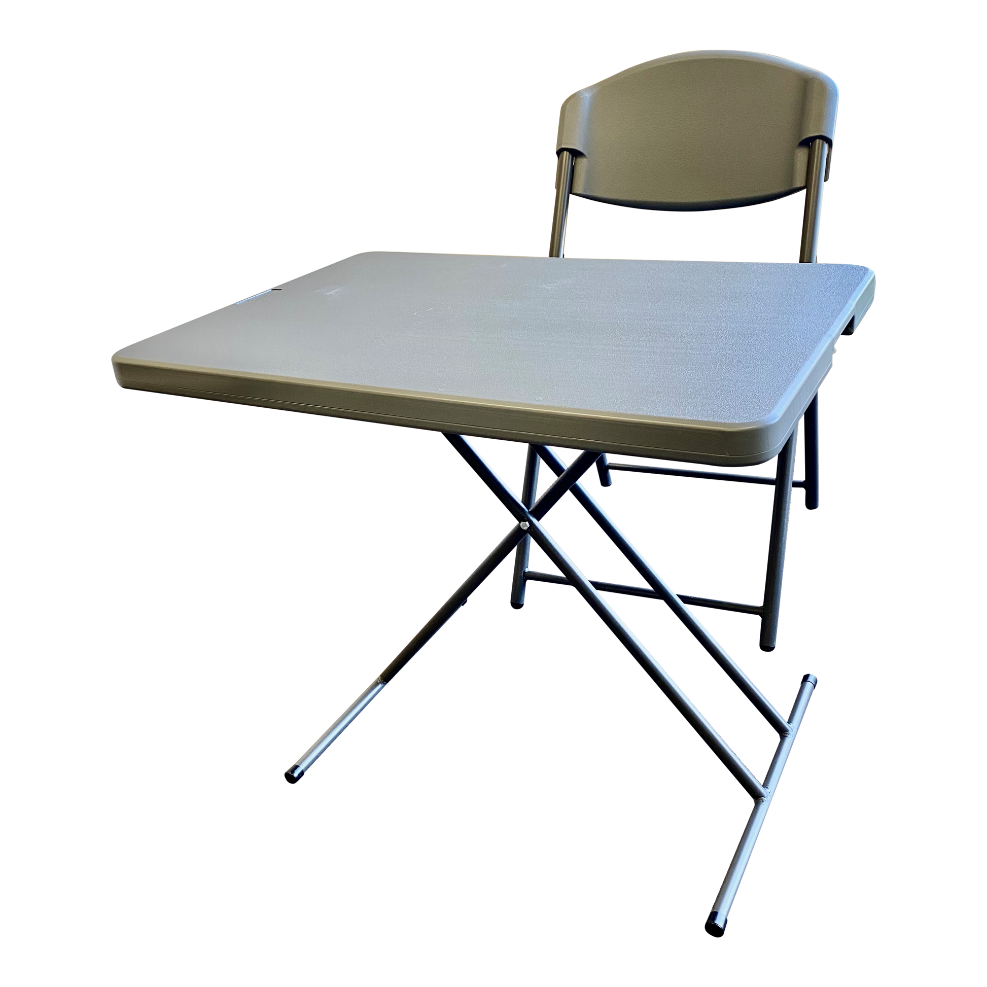 Durable, commercial-grade, SKILCRAFT® Blow-Molded Personal Adjustable Height Folding Tables are highly portable. For use indoors or outdoors. TAA and Berry Amendment compliant. Made in America.