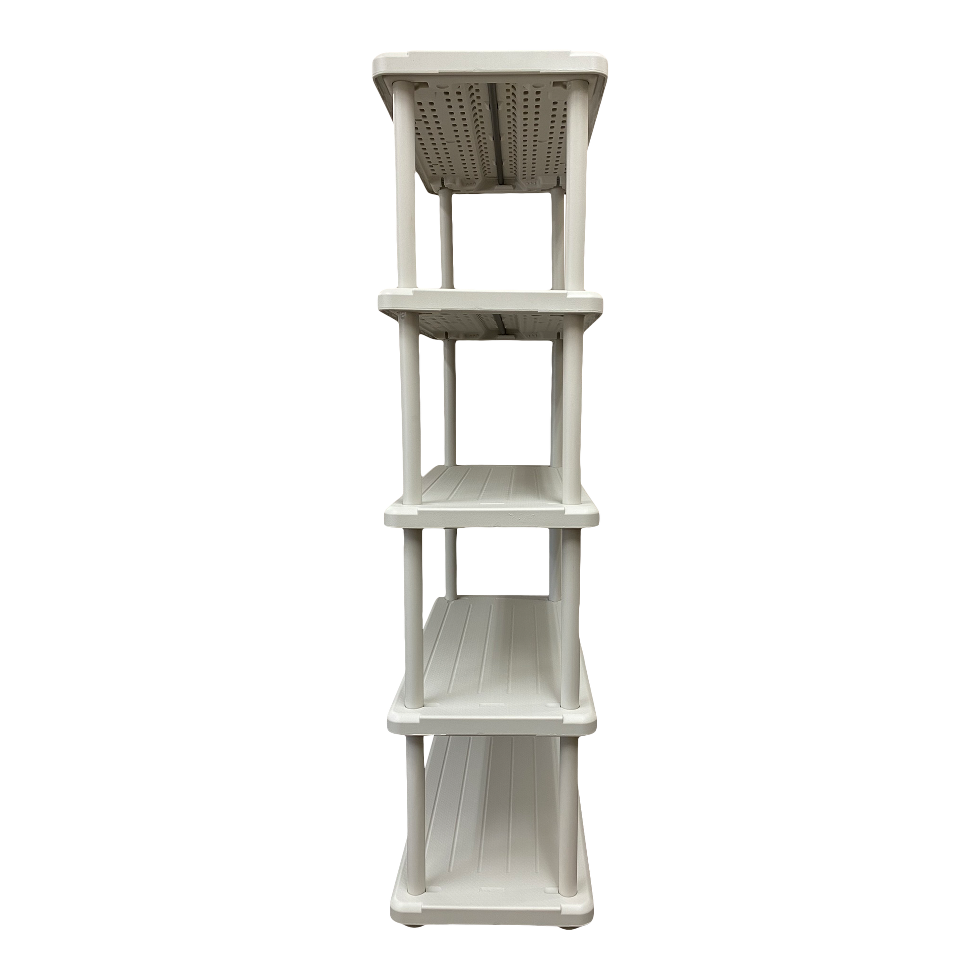 Lighter weight than steel shelving yet more durable, SKILCRAFT® Plastic Open Storage Shelving Units feature heavy-duty, commercial grade uprights for increased stability. The five-shelf model with wall anchors made of blow-molded, high-density polyethylene with steel-reinforced shelves that can hold up to 180 pounds per shelf. Units snap together for fast assembly; trim caps are included. Easy-to-clean, resist scratches, dents, impact, rust, and stains. Meets or exceeds ANSI/BIFMA standards. 5-year limited warranty. TAA and Berry Amendment compliant. Made in America.