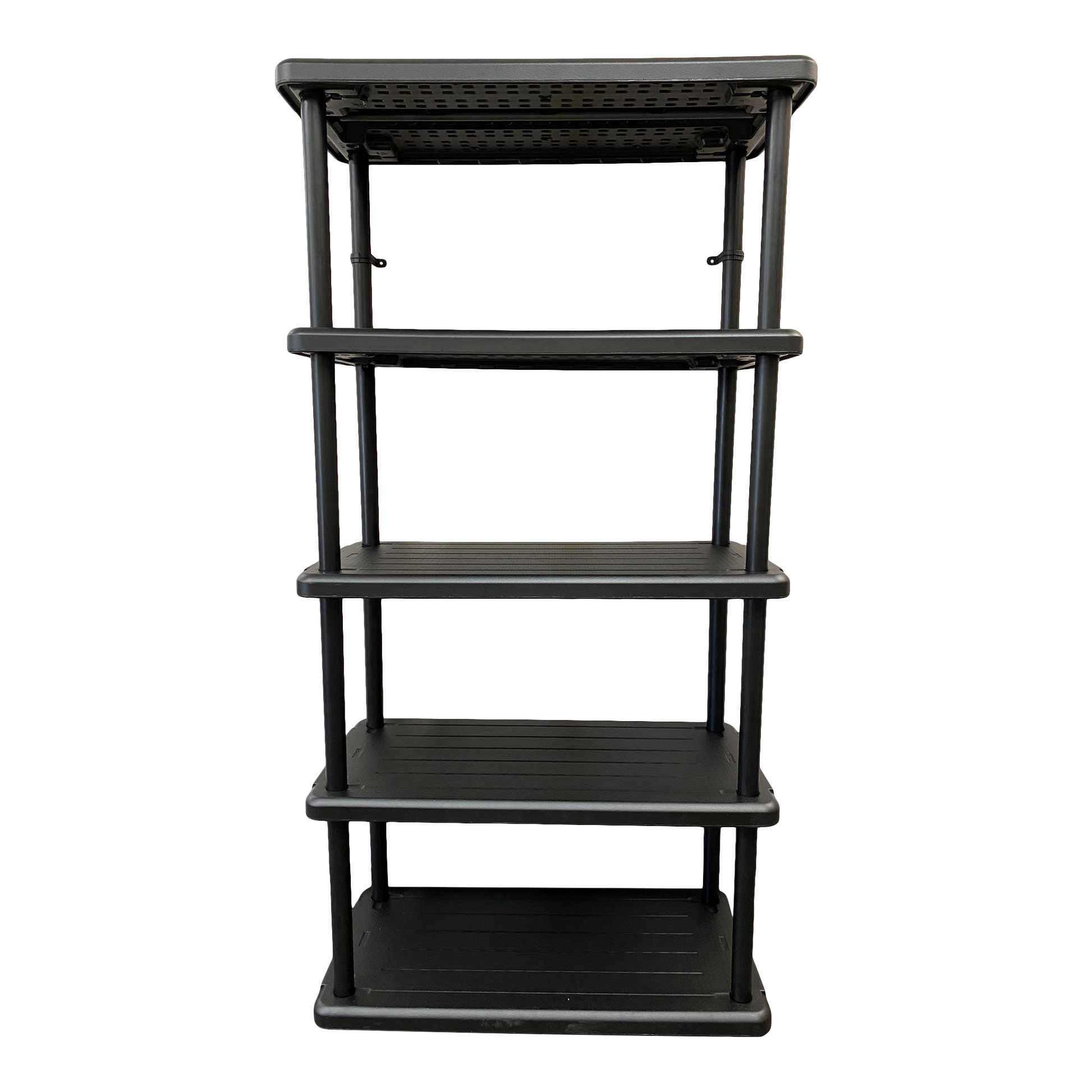 Lighter weight than steel shelving yet more durable, SKILCRAFT® Plastic Open Storage Shelving Units feature heavy-duty, commercial grade uprights for increased stability. The five-shelf model has wall anchors made of blow-molded, high-density polyethylene with steel-reinforced shelves that can hold up to 180 pounds per shelf. Units snap together for fast assembly; trim caps are included. Easy-to-clean, resist scratches, dents, impact, rust, and stains. Meets or exceeds ANSI/BIFMA standards. 5-year limited warranty. TAA and Berry Amendment compliant. Made in America.