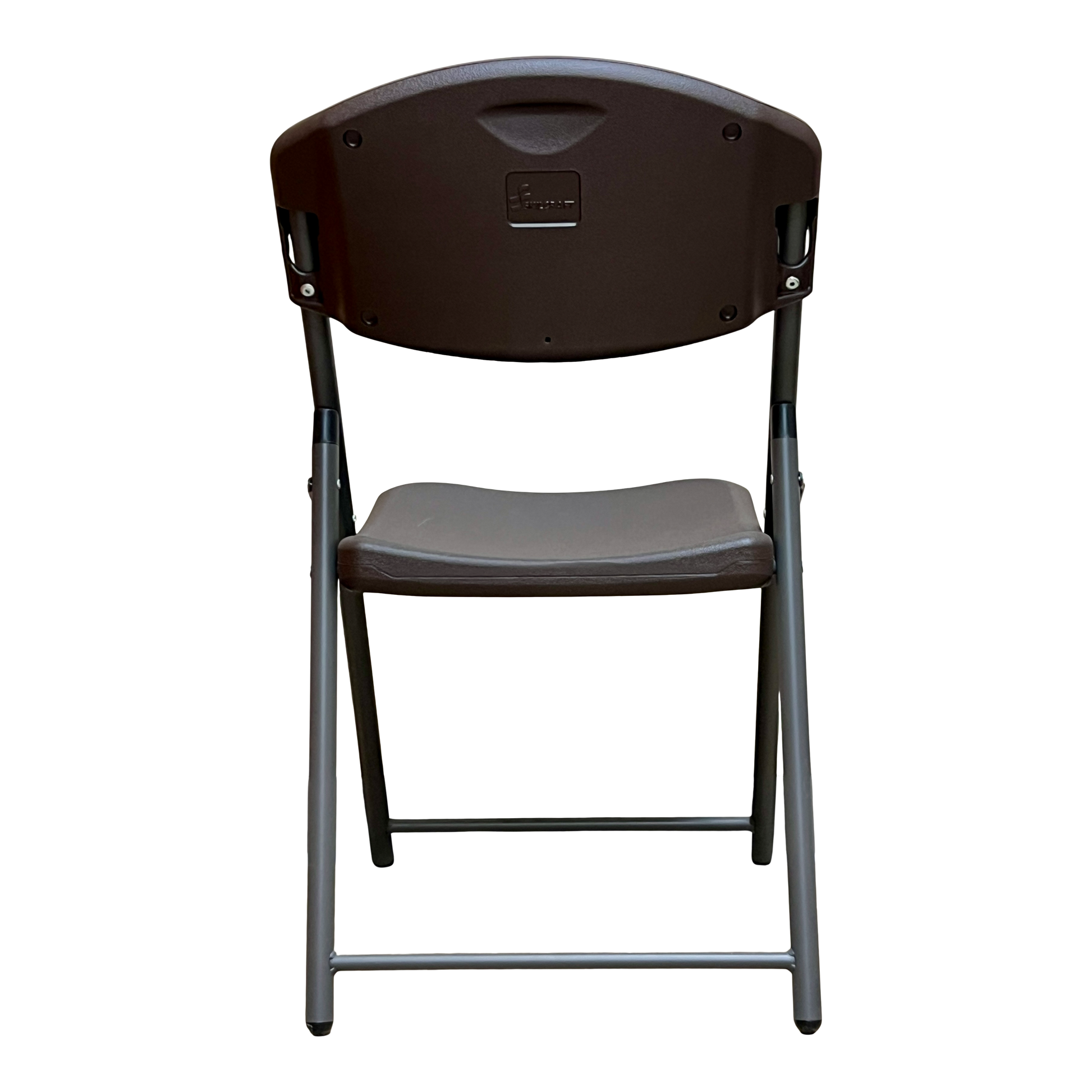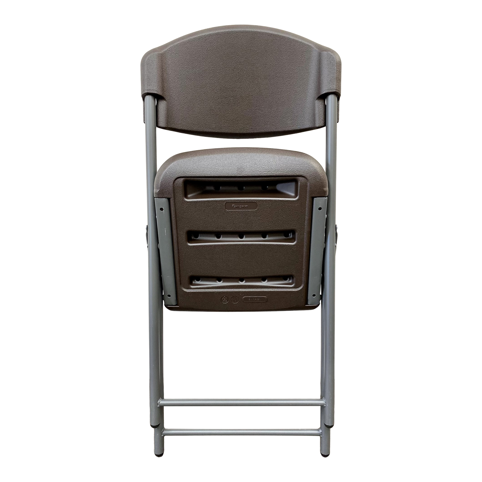 Lightweight commercial grade folding chairs for indoor and outdoor use are ergonomically contoured with an extra wide seat for comfort and plastic feet that won't mar floors. Made of blow molded, high-density, polyethylene with powder coated heavy-gauge steel frame and leg assemblies for durability and portability, these chairs resist dents, scratches, and scuffs, yet nest for easy storage. 350-lb weight capacity. Limited 5-year warranty. Made in America.