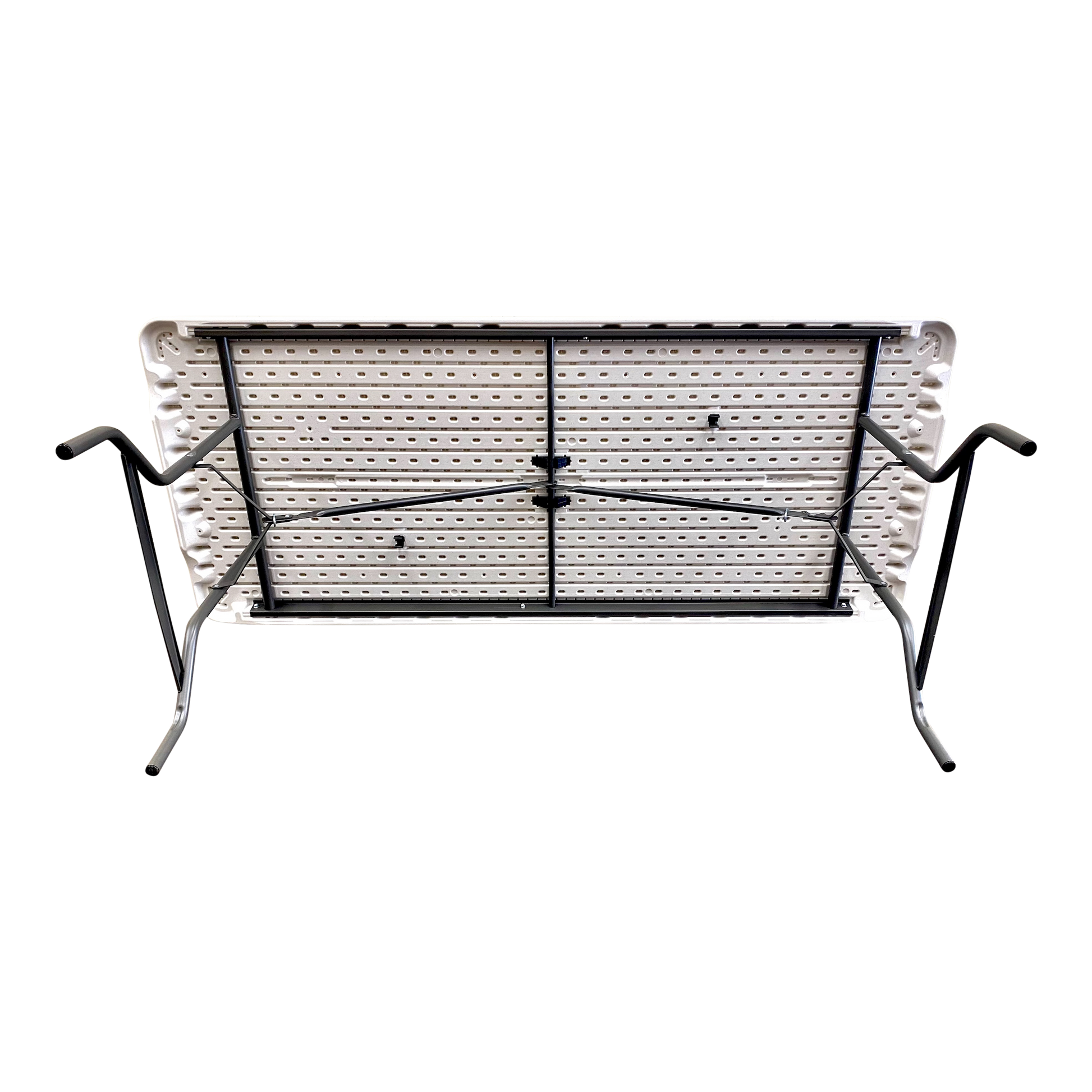 Easy-to-carry commercial-grade SKILCRAFT® Blow-Molded Folding Tables for indoor and outdoor use are made of high-density polyethylene with contemporary beveled radius edged tops. Tables weigh 30% less than standard wood laminate folding tables but are far more durable with heavy-gauge, gray powder-coated steel legs, non-mar plastic feet, and cross bracing that folds into the underside cavity for safe storage and easy transport. Tables clean easily; resist dents, scratches, rust, stains, and warping; and carry a 5-year limited warranty. Made in the U.S.A. with tops of approximately 35% pre-consumer recycled content and all parts recyclable at end of life. TAA and Berry Amendment-compliant tables meet BIFMA standards. Made in America.