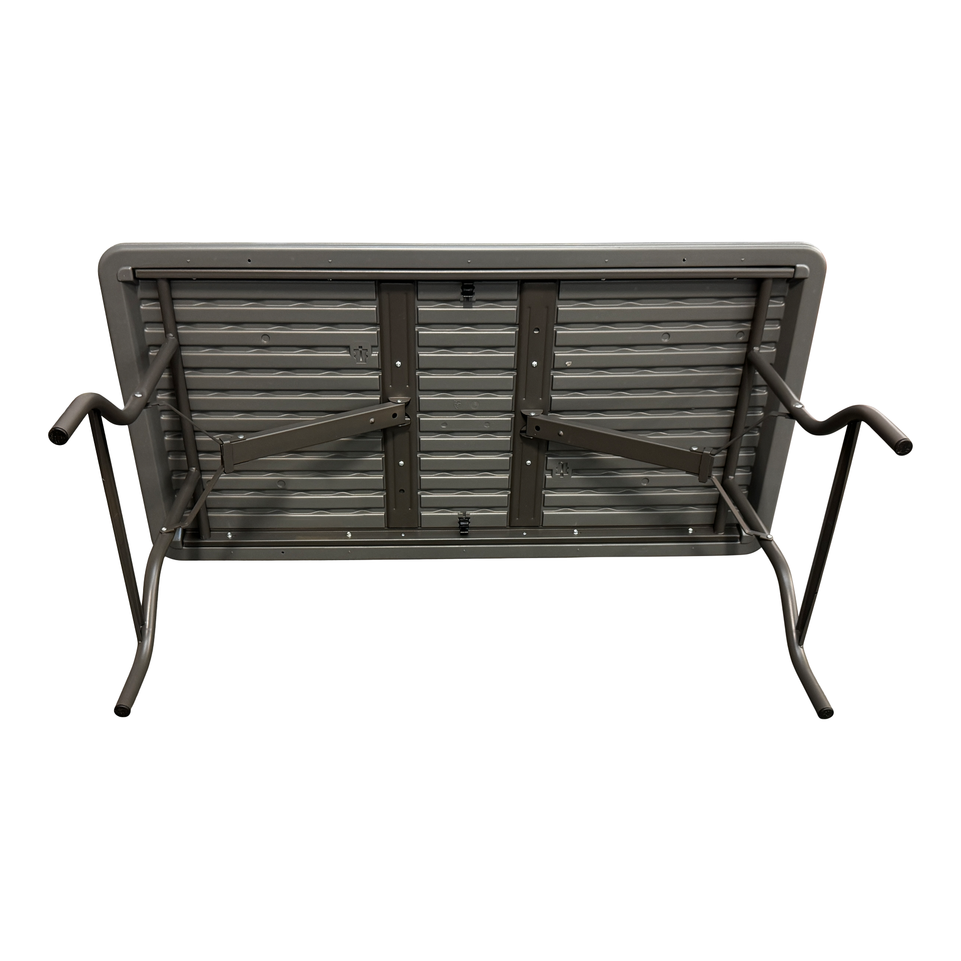 Easy-to-carry commercial-grade SKILCRAFT® Blow-Molded Folding Tables for indoor and outdoor use are made of high-density polyethylene with contemporary beveled radius edged tops. Tables weigh 30% less than standard wood laminate folding tables but are far more durable with heavy-gauge, gray powder-coated steel legs, non-mar plastic feet, and cross bracing that folds into the underside cavity for safe storage and easy transport. Tables clean easily; resist dents, scratches, rust, stains, and warping; and carry a 5-year limited warranty. Made with tops of approximately 35% pre-consumer recycled content and all parts recyclable at end of life. TAA and Berry Amendment-compliant tables meet BIFMA standards. Made in America.