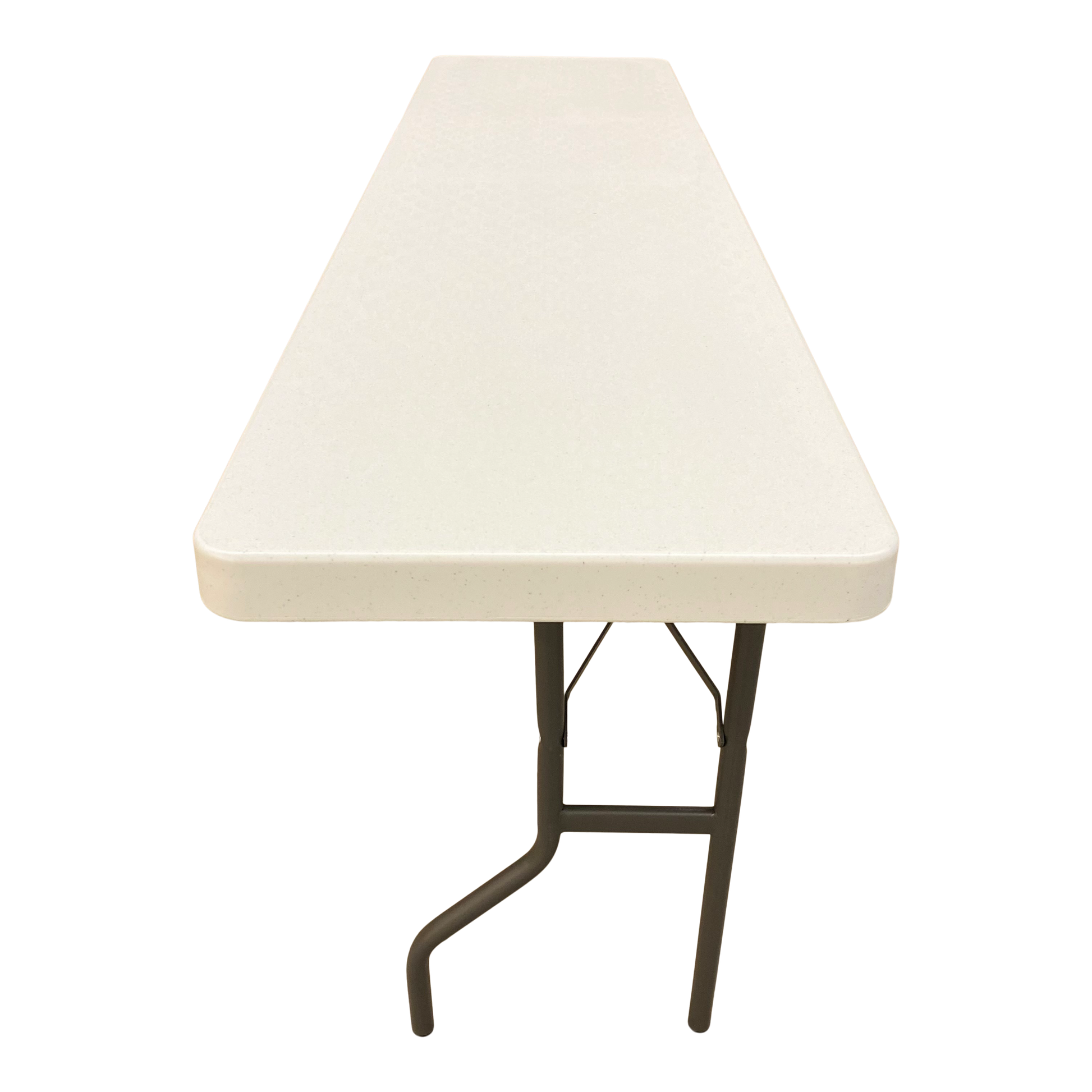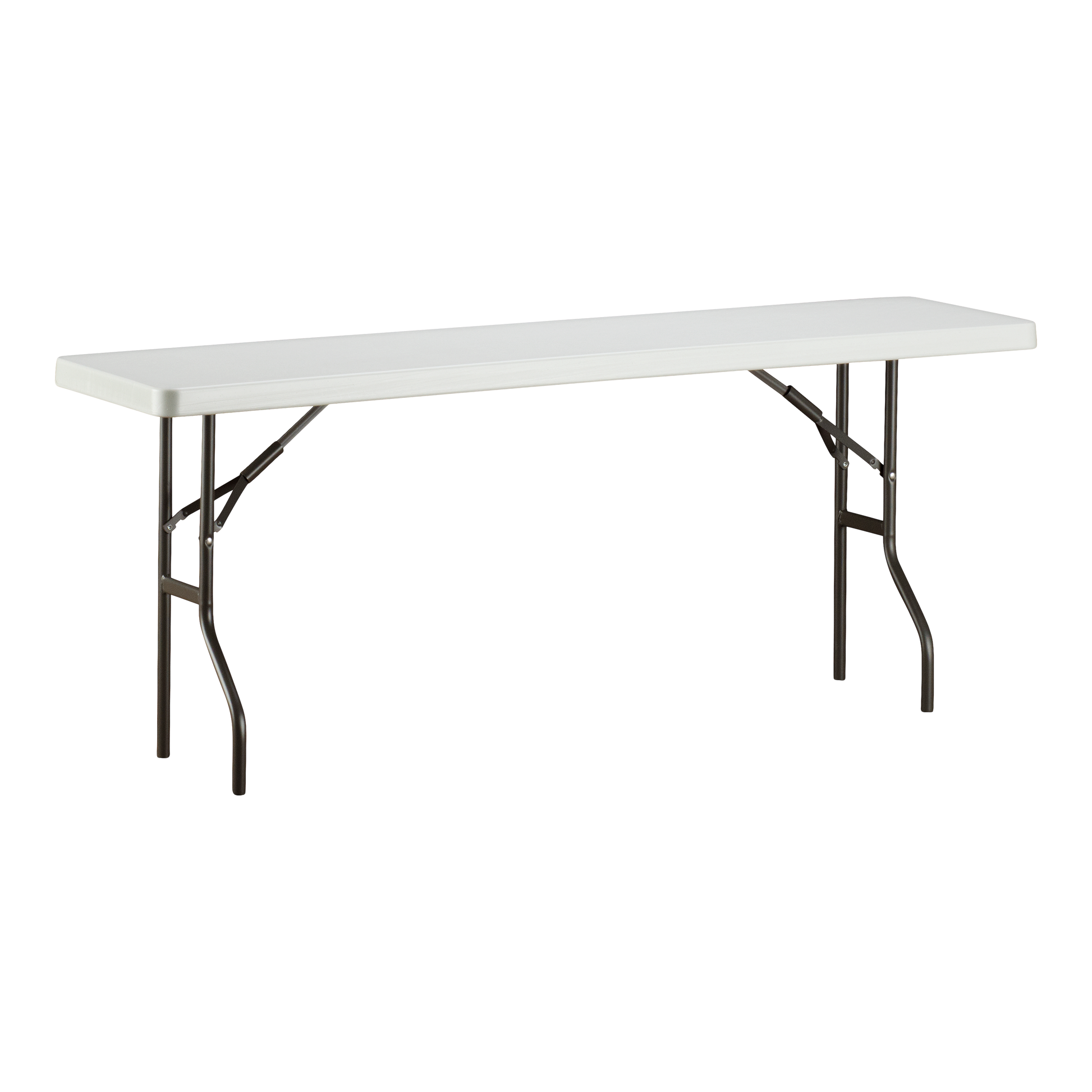 Easy-to-carry commercial-grade SKILCRAFT® Blow-Molded Folding Tables for indoor and outdoor use are made of high-density polyethylene with contemporary beveled radius edged tops. Tables weigh 30% less than standard wood laminate folding tables but are far more durable with heavy-gauge, gray powder-coated steel legs, non-mar plastic feet, and cross bracing that folds into the underside cavity for safe storage and easy transport. Tables clean easily; resist dents, scratches, rust, stains, and warping; and carry a 5-year limited warranty. Made with tops of approximately 35% pre-consumer recycled content and all parts recyclable at end of life. TAA- and Berry Amendment-compliant tables meet BIFMA standards. Made in America.